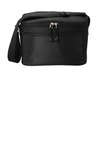 This cooler easily holds six cans as well as an ice pack and other must-haves. 420 denier honeycomb polyester, 600 denier polyester canvas Adjustable web carrying strap Heat-sealed, water-resistant lining Interior zippered mesh pocket for utensils Large front slip pocket for easy decoration access Dimensions: 6.25'h x 9'w x 7'd; Approx. 393 cubic inches Note: Bags not intended for use by children 12 and under. Includes a California Prop 65 and social responsibility hangtag.