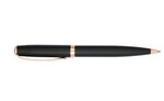 The Luxe Recycled Brass Matte Ballpoint Pen offers an elegant, eco-conscious design with a 60% recycled brass barrel and a matte black finish, highlighted by rose gold accents. The LUXE logo on the middle ring adds a refined touch, while the precise 0.5mm black gel ink tip ensures a smooth writing experience. This pen features a twist-action mechanism for easy use. By choosing this pen, you're also contributing to environmental nonprofits through 1% For The Planet.